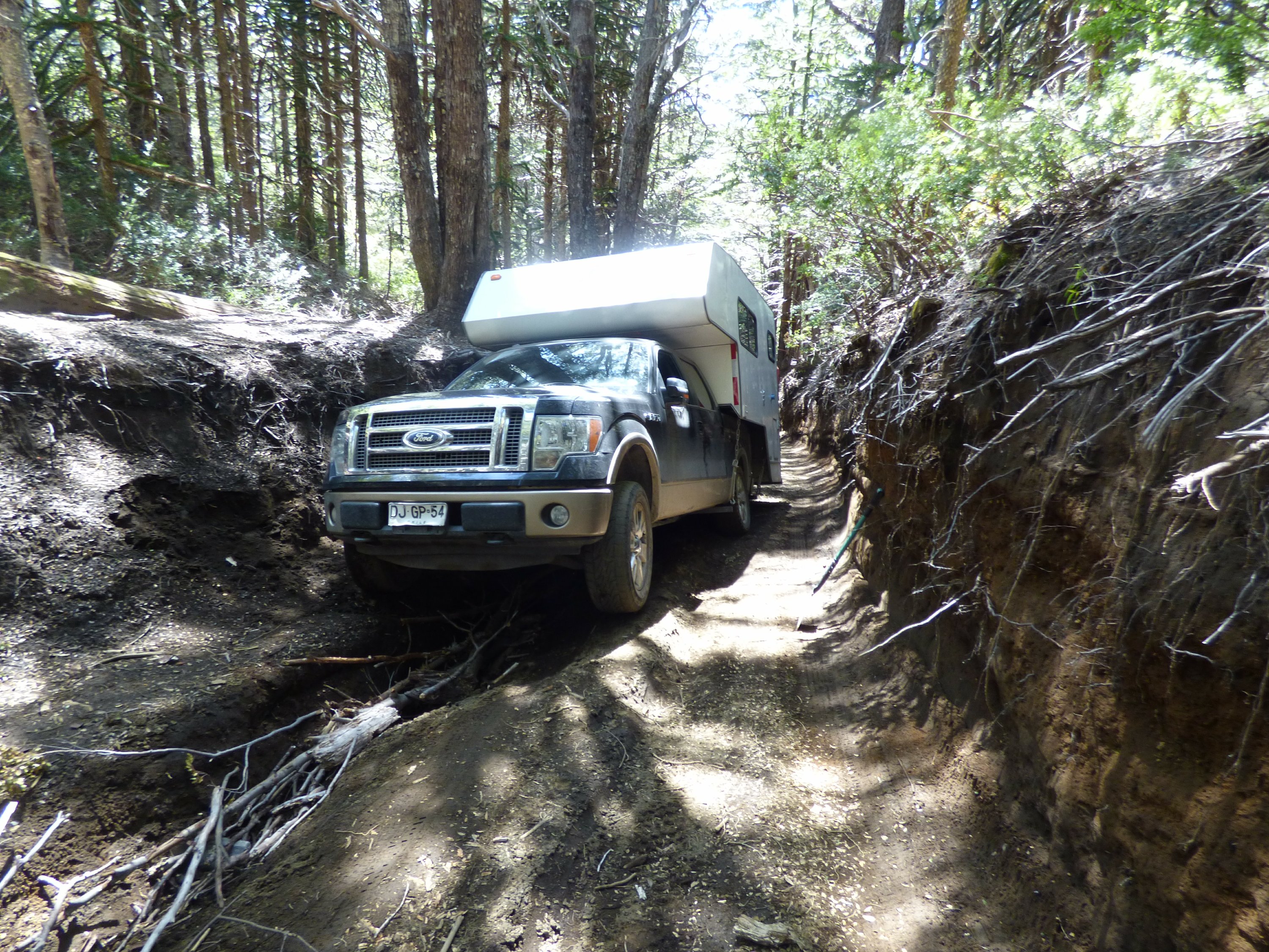 Am folgenden Tag war der weitere Weg nicht wirklich besser. Hinzu kamen nun sehr engstehende Bäume die mit unseren breiten und 7 meter langen Gefährt nur, wie in Anfangs beschrieben, in 10er Schritten bewältigt werden konnten.