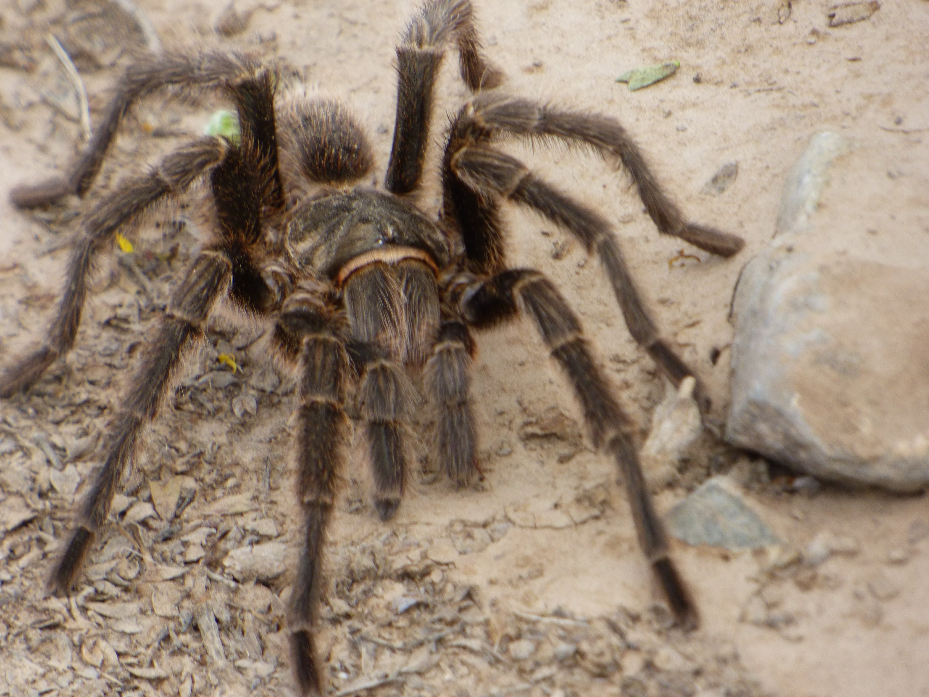 Kaum hatten wir den Rückweg angetreten querte eine Handgrosse haarige Tarantel den Weg. Mit gehörigen Respekt schossen wir ein paar Fotos von ihr . Der Tarantel war unsere Anwesenheit auch nicht ganz geheuer.