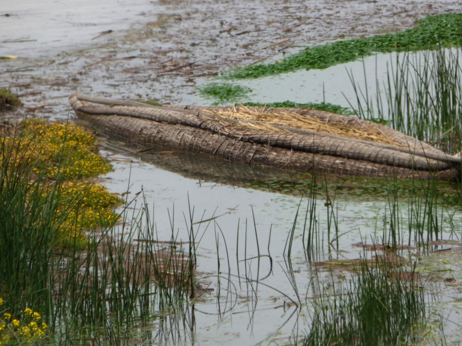 Diese Schilfboote des auf 3800 Meter hoch gelegenen Titicacasee sieht man nur noch selten, da sie mittlerweile von Holzbooten ersetzte werden.