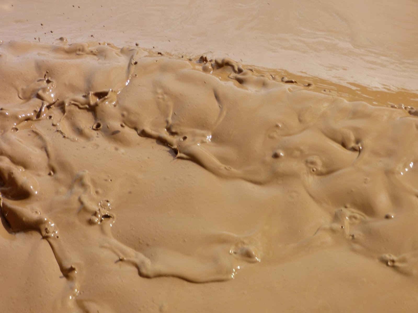 Wir zögerten bei der Durchfahrung da wir weder sehen konnten wie tief das schlammige Gewaber war noch ob der Untergrund tragfähig war. Aber wir mussten dort durch und vertrauten auf Allrad und unseren grobstolligen Reifen.