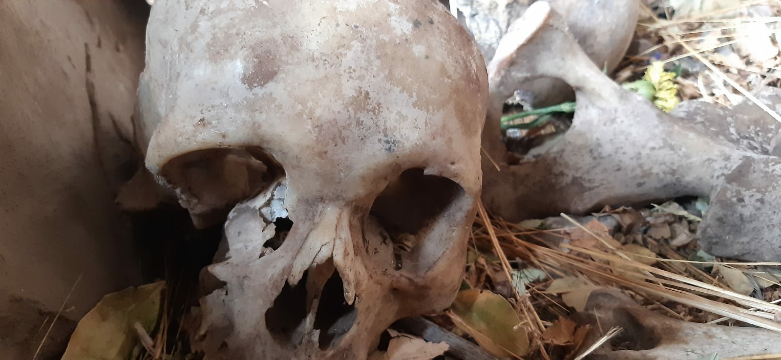 Dort fanden wir eine menschliche Schädeldecke. Weiter unten gab es eine Felsenhöhle . Dort lagen tatsächlich noch mehr menschliche Gebeine und deren Totenköpfe.