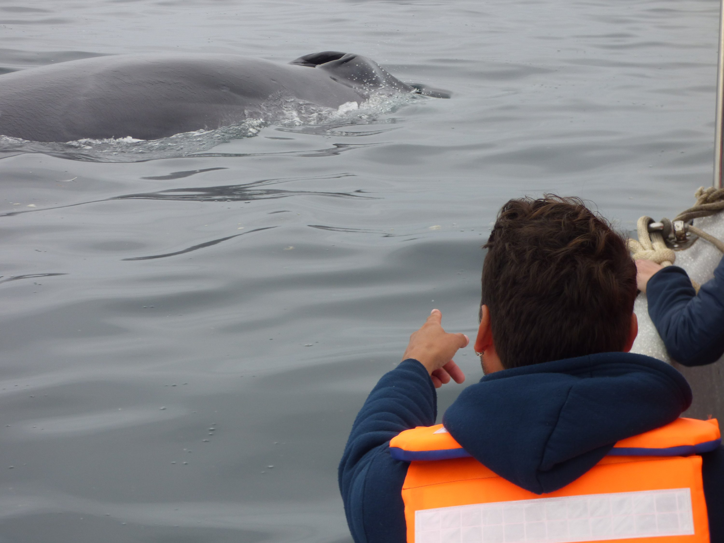 Wenn die grauen Rücken der geschätzten 15 bis 20 Meter langen Tiere bis auf wenige Meter neben dem auf Pirschfahrt befindlichen Boot auftauchen, standen alle gebannt und muksmäuschen still an der Rehling, so das wir sogar in deren Blasloch sehen konnten.