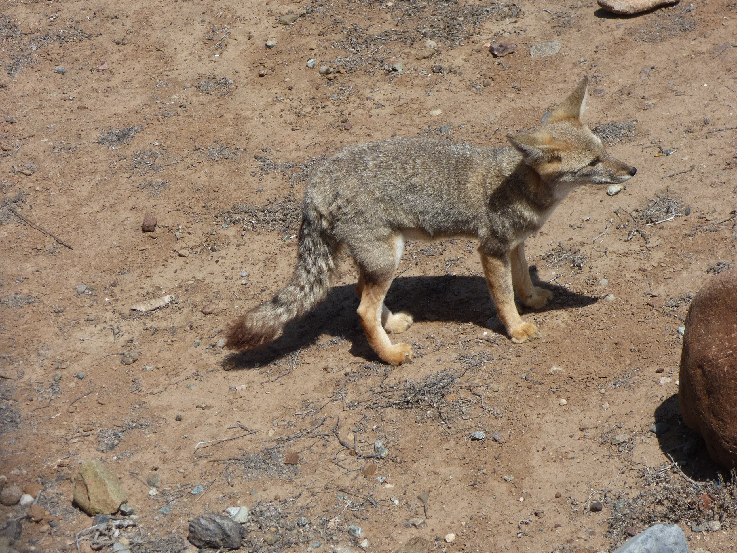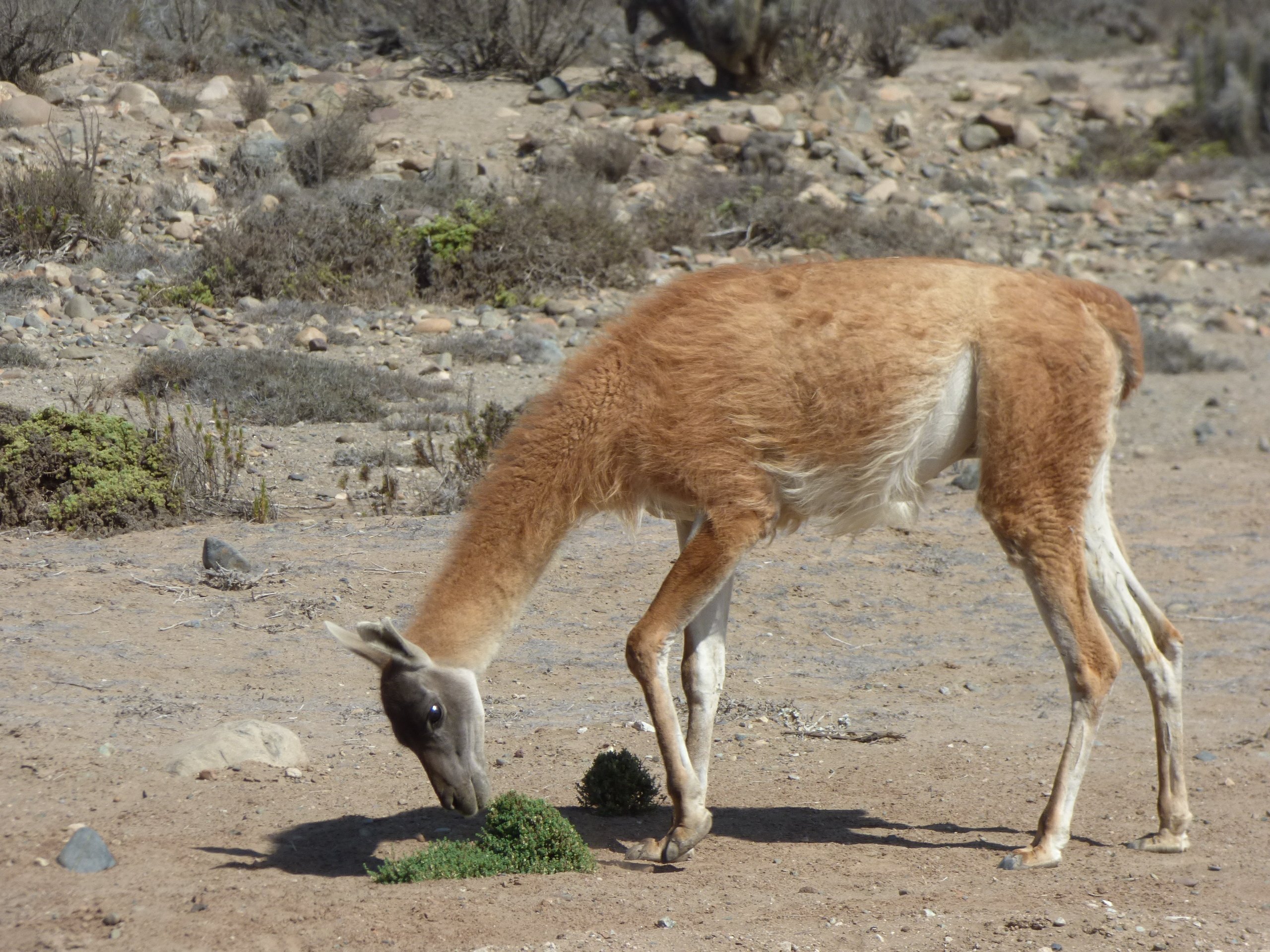 Das Gebiet zwischen trockenen Kakteenwald gehört den Füchse und Guanacos, die hier wenig menschenscheu dicht an die Strasse heran kommen.